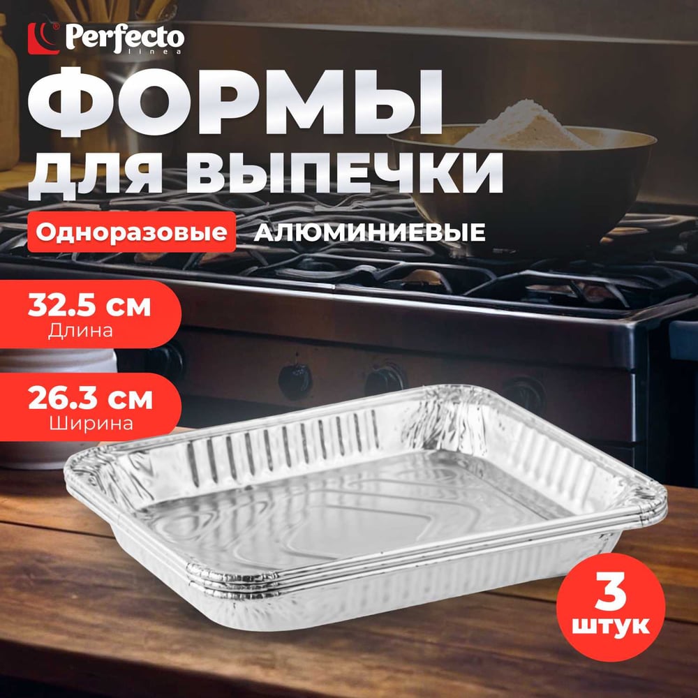 Алюминиевая форма для выпечки PERFECTO LINEA одноразовая, прямоугольная 32.5x26.3x4.3 см 3 шт 45-332265