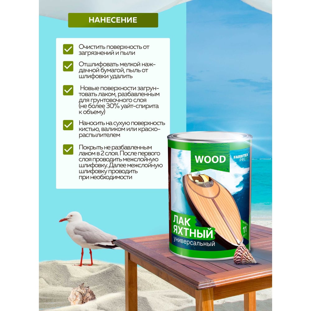 Универсальный уралкидный яхтный лак Farbitex 4300006057