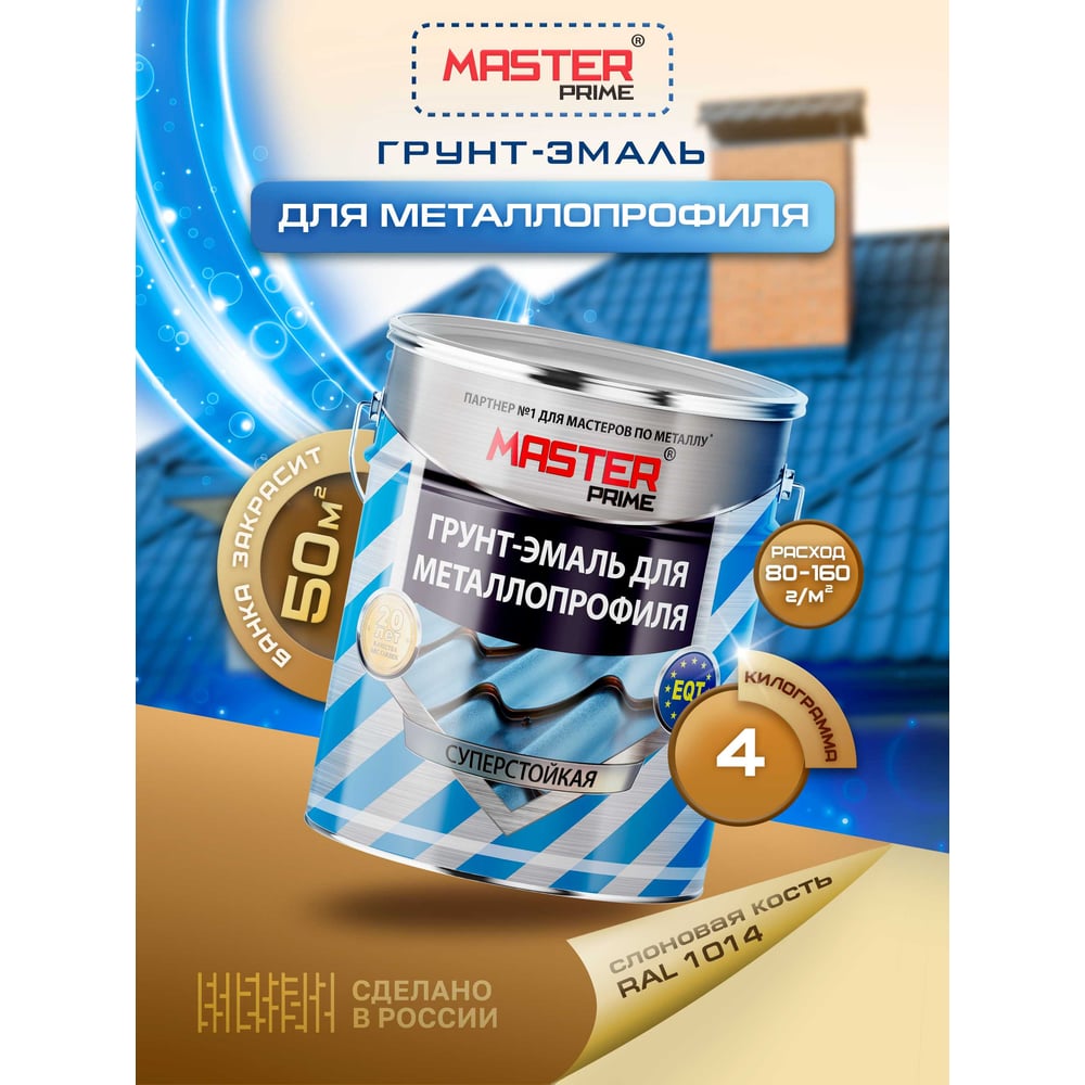 Грунт-эмаль для металлопрофиля MASTER PRIME RAL 1014 слоновая кость, 4 кг 4300006954