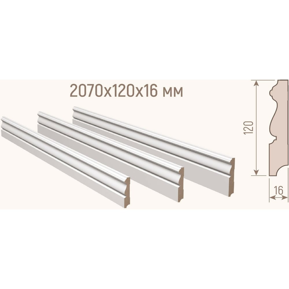 Плинтус Стильный Дом Р001-16-120 МДФ, белый окрашенный v530163