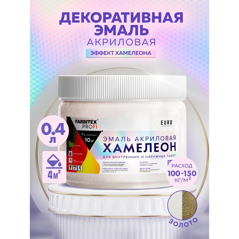 Акриловая эмаль с декоративным эффектом FARBITEX Хамелеон (золотой; 0.4 л) 4300009446