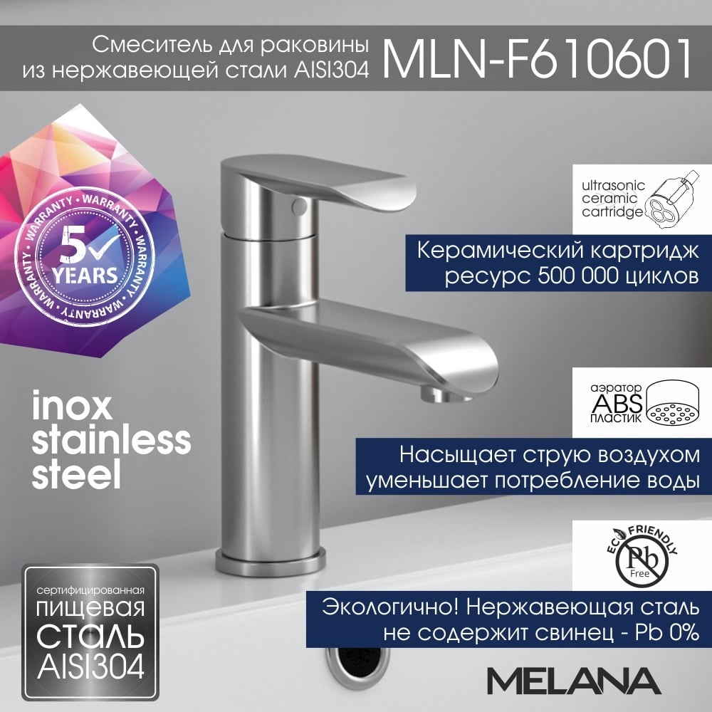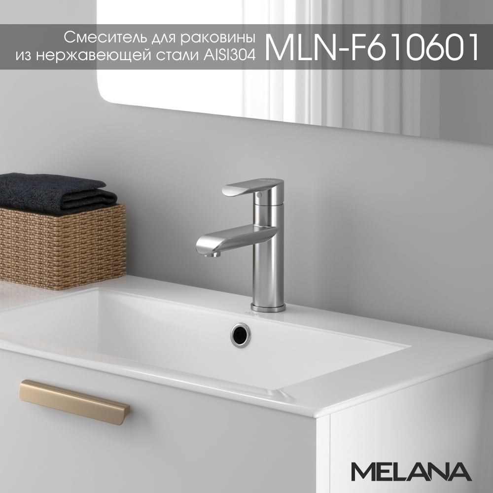 Смеситель для умывальника MELANA F Paola Hi-tech нерж.сталь, однорычажный, сатин, литой излив 610601