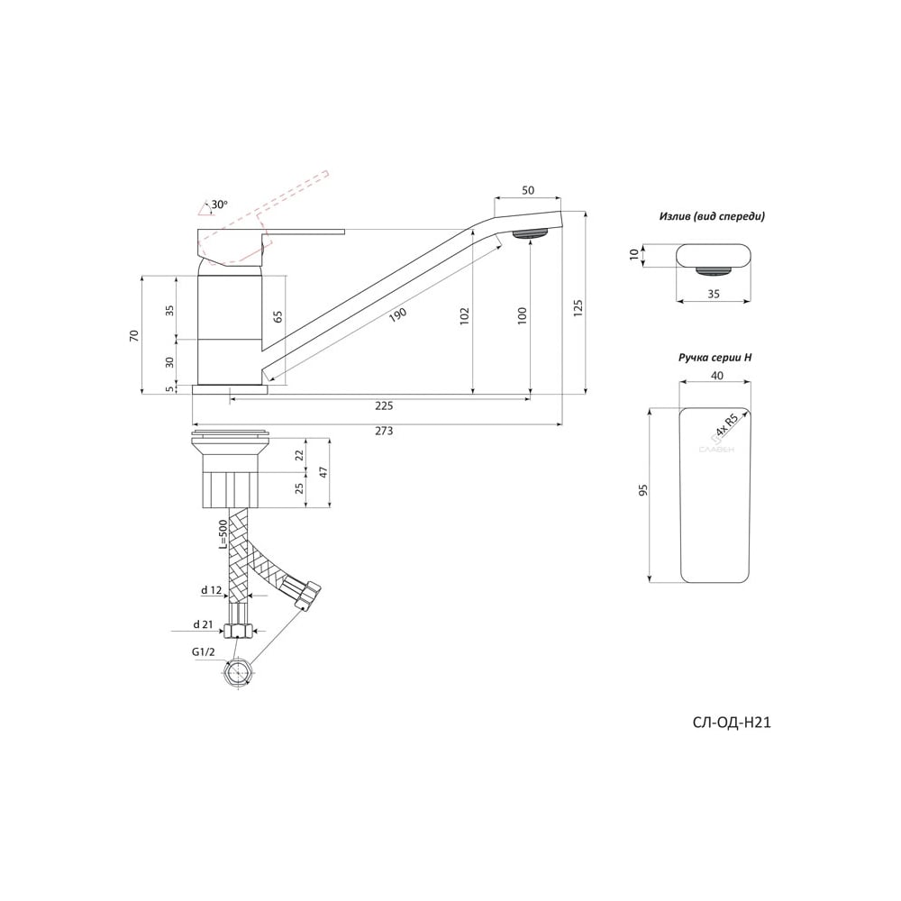 Смеситель для мойки Славен с длинным изливом, одноручный Н21 СЛ-ОД-Н2Ч