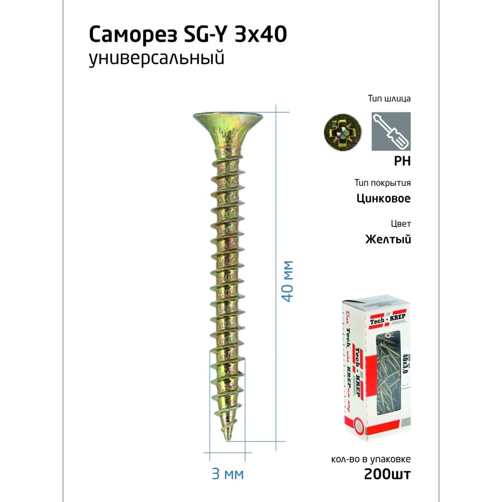 Универсальный саморез Tech-Krep 40х3,0 мм 200 шт желтый, коробка с окном 102229