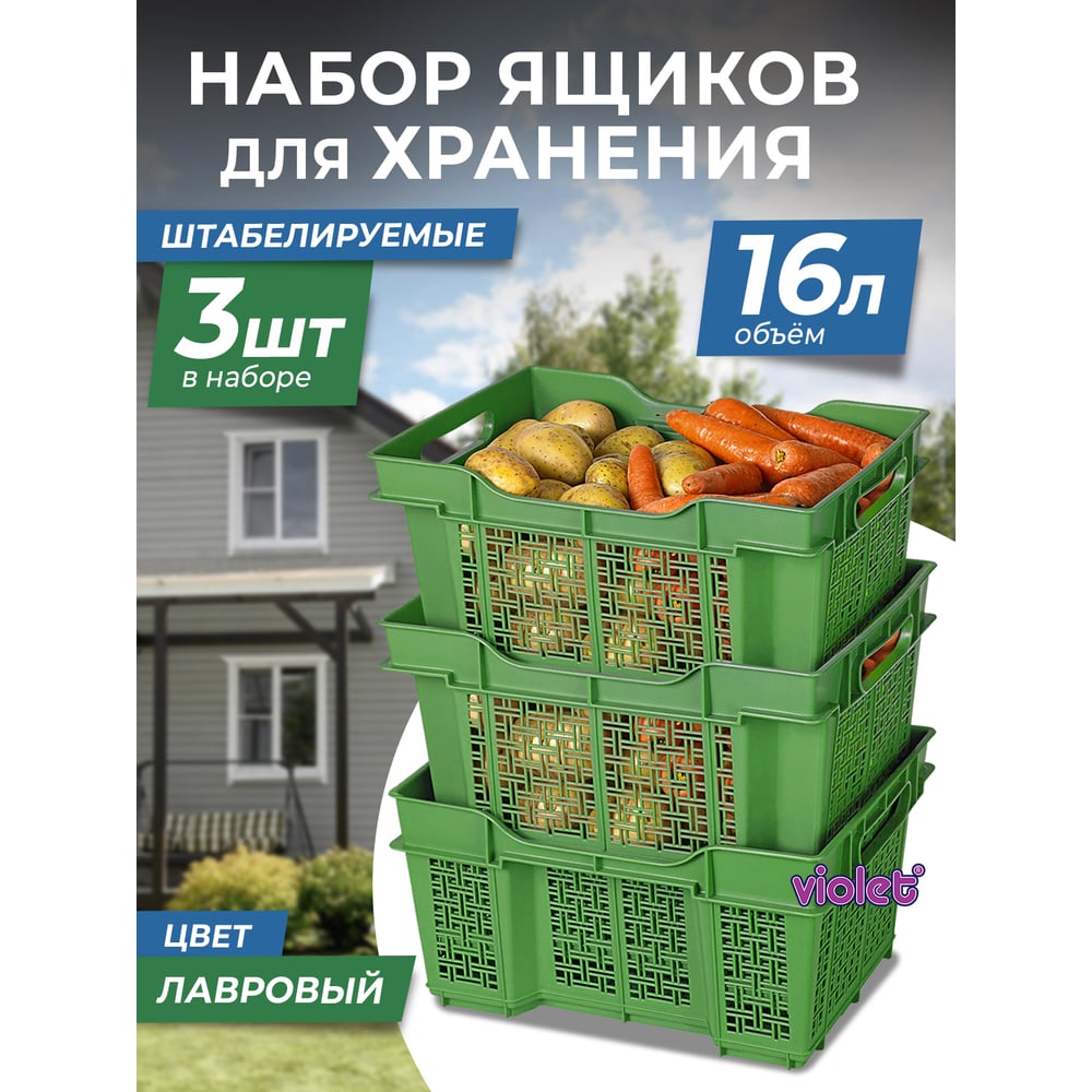 Универсальный ящик Violet 16 л, 400x300x220 мм, лавровый, набор 3 шт. 173632