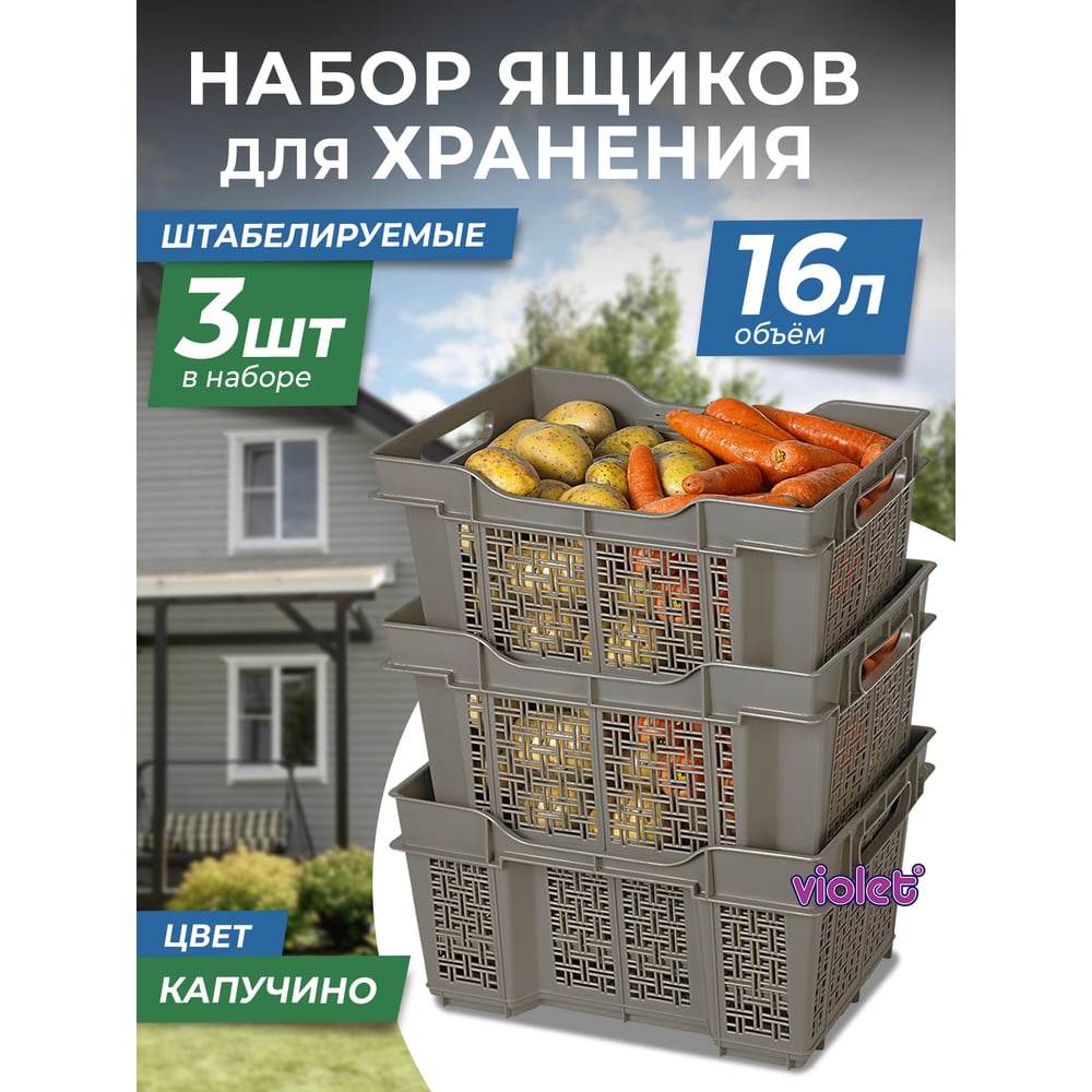Универсальный ящик Violet 16 л, 400x300x220 мм, капучино, набор 3 шт. 173619