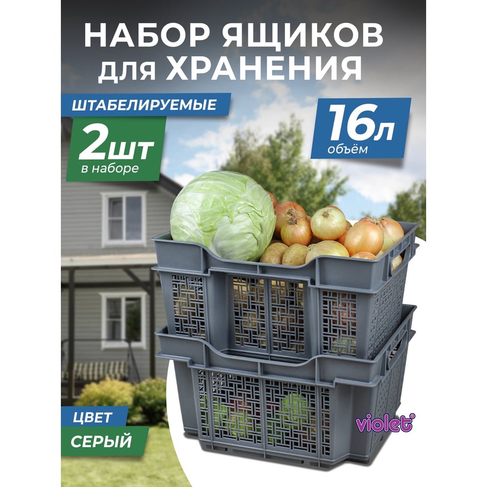 Универсальный ящик Violet 16 л, 400x300x220 мм, серый, набор 2 шт. 172608