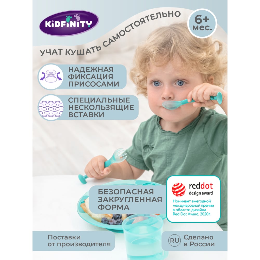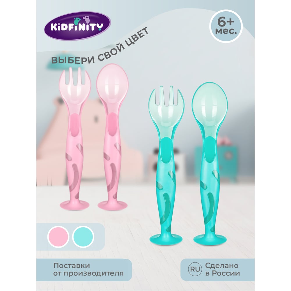 Набор Kidfinity ложечка и вилочка на присосе зеленый 431312009