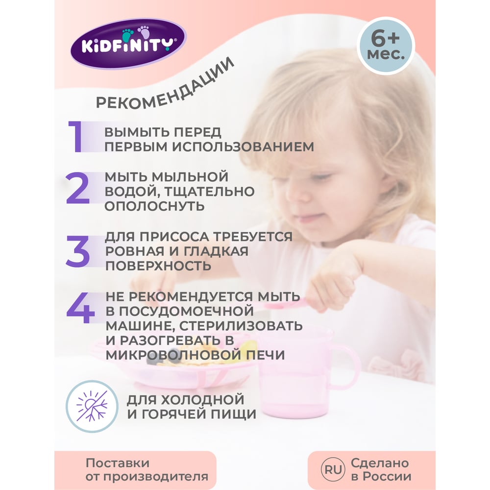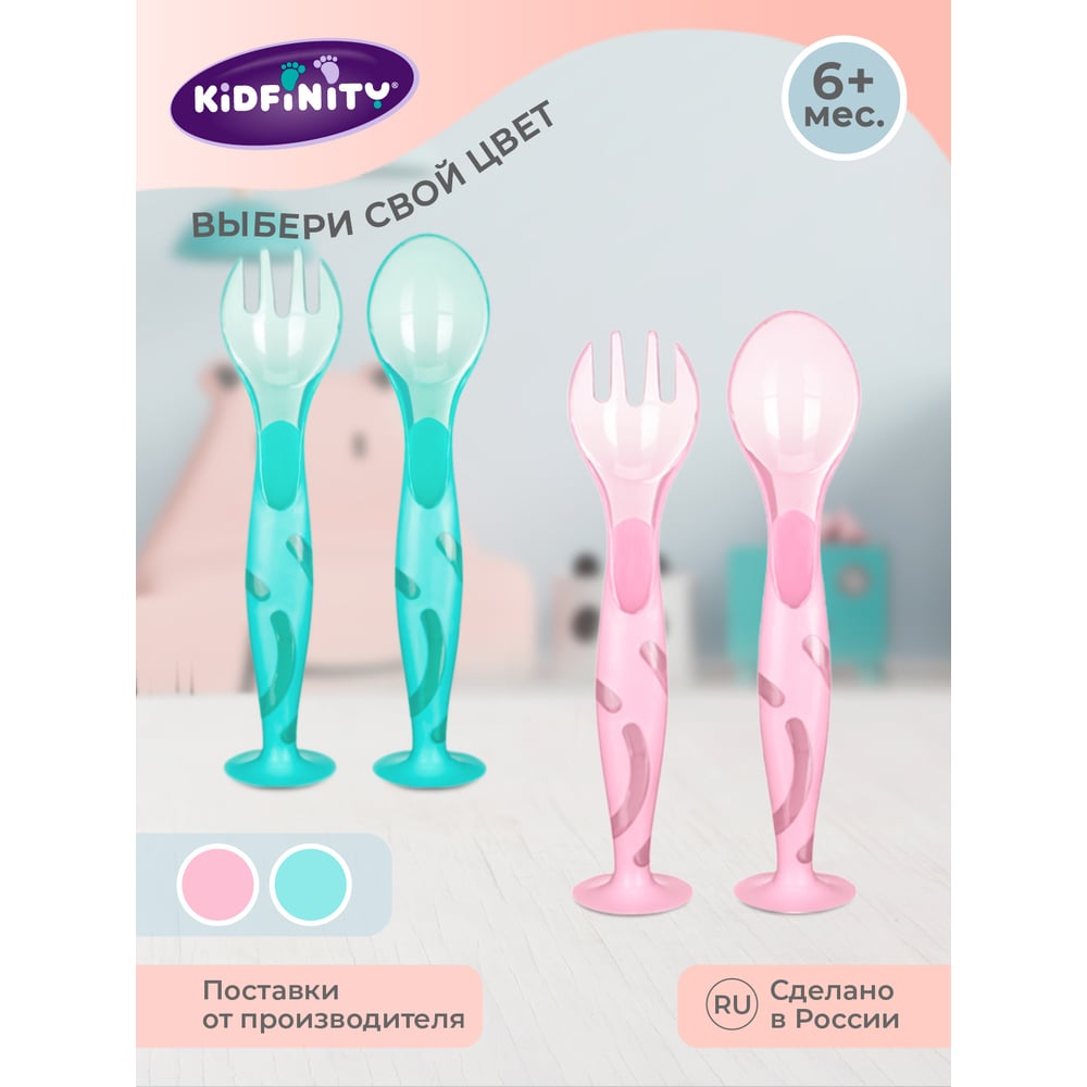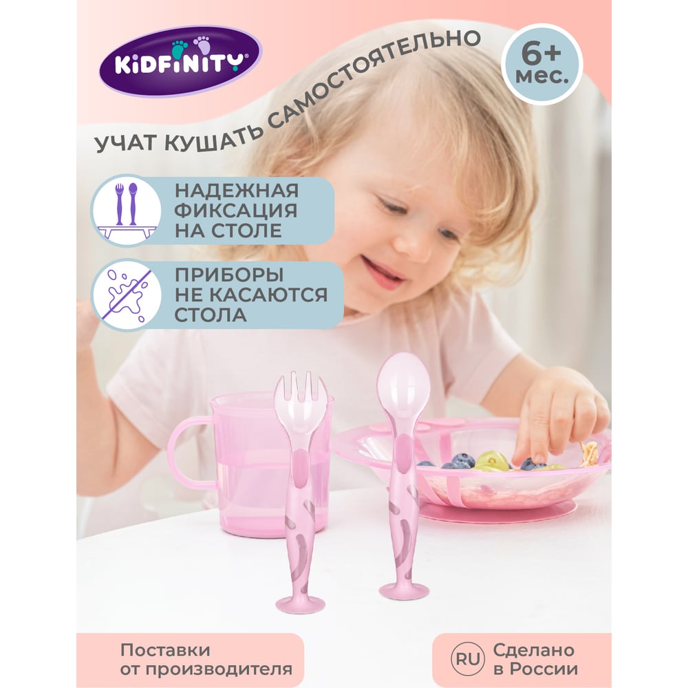 Набор Kidfinity ложечка и вилочка на присосе розовый 431312005