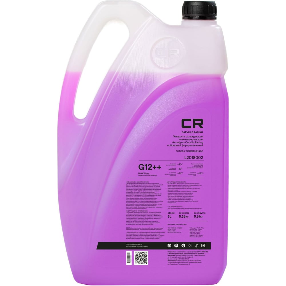 Антифриз CARVILLE RACING лобридный флуоресцентный -40С, Si-OAT, G12++, фиолет, готовый, 5л/5.36кг L2018002
