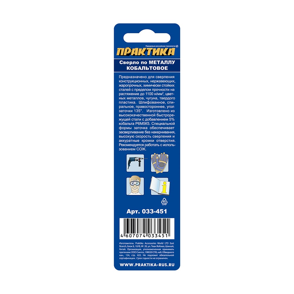 Сверло по металлу кобальтовое (4х75 мм) ПРАКТИКА 033-451