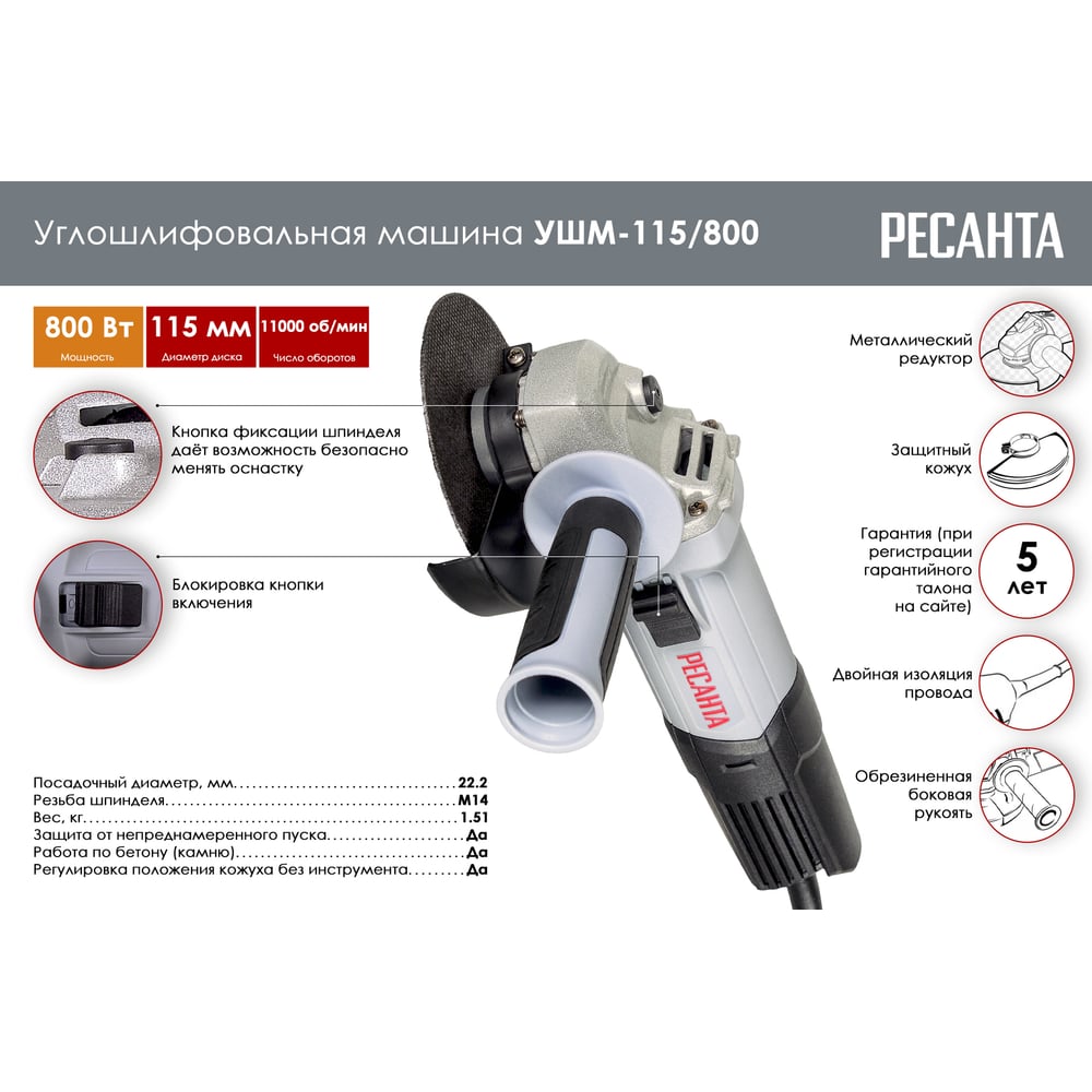 | Резьба шпинделя | М14 |