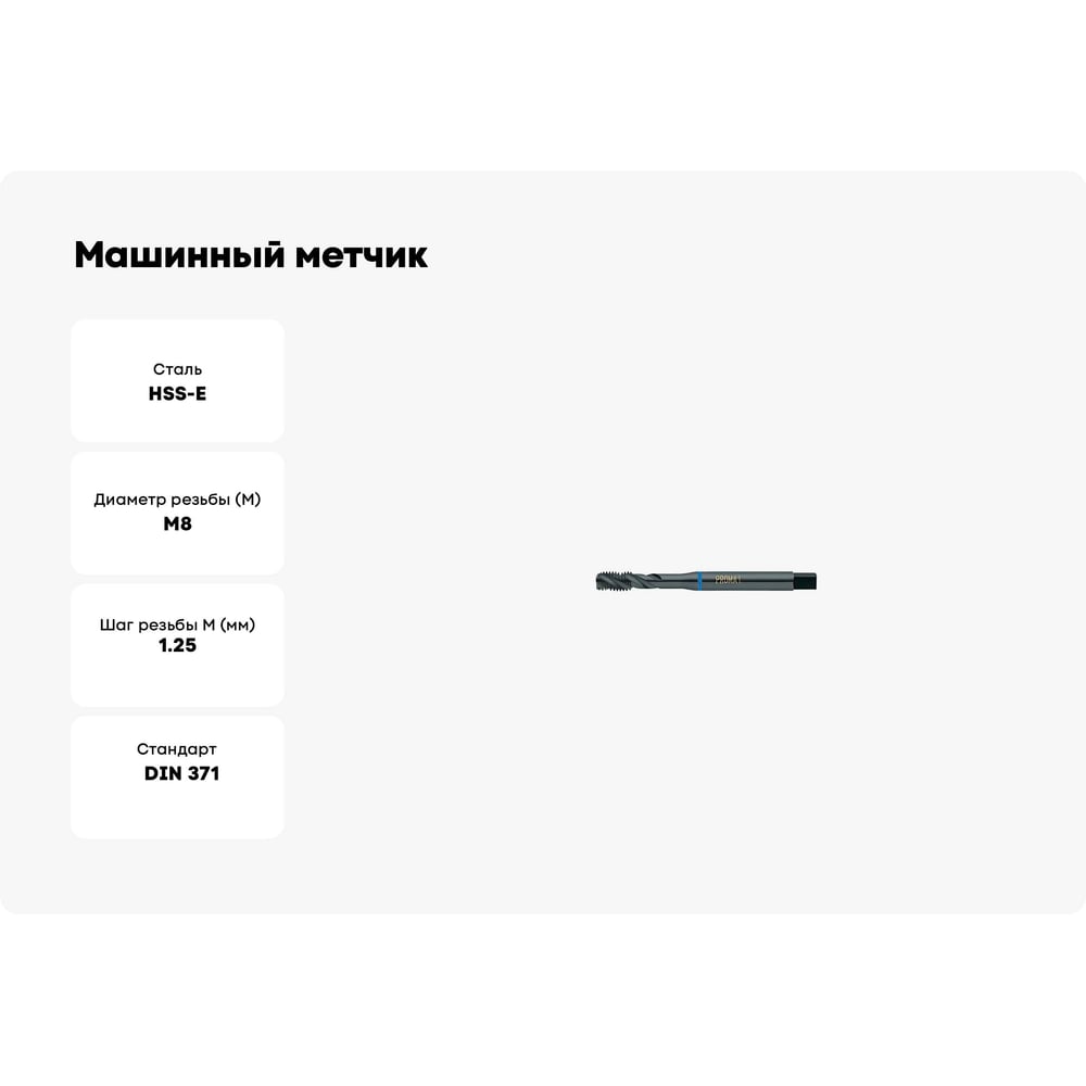 Машинный метчик Promat по Inox, для г/о, М8, HSSE, DIN371 4000867278