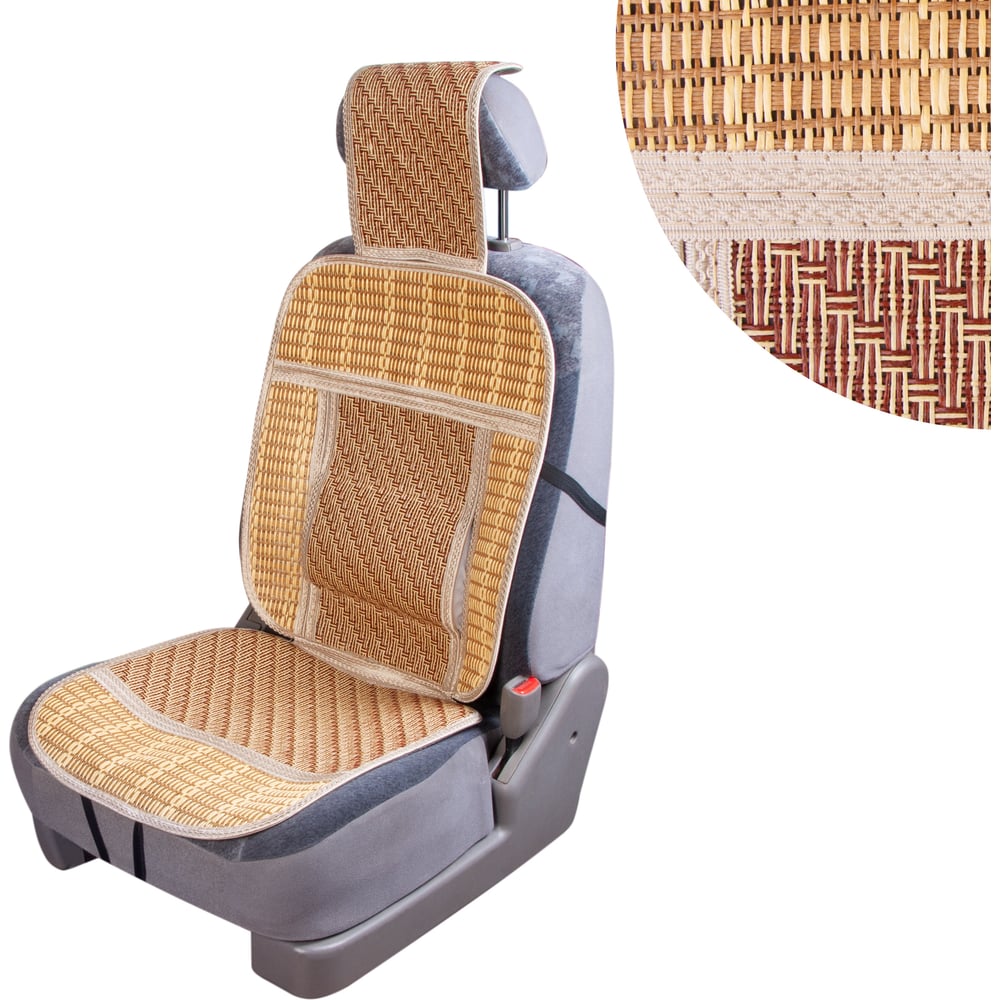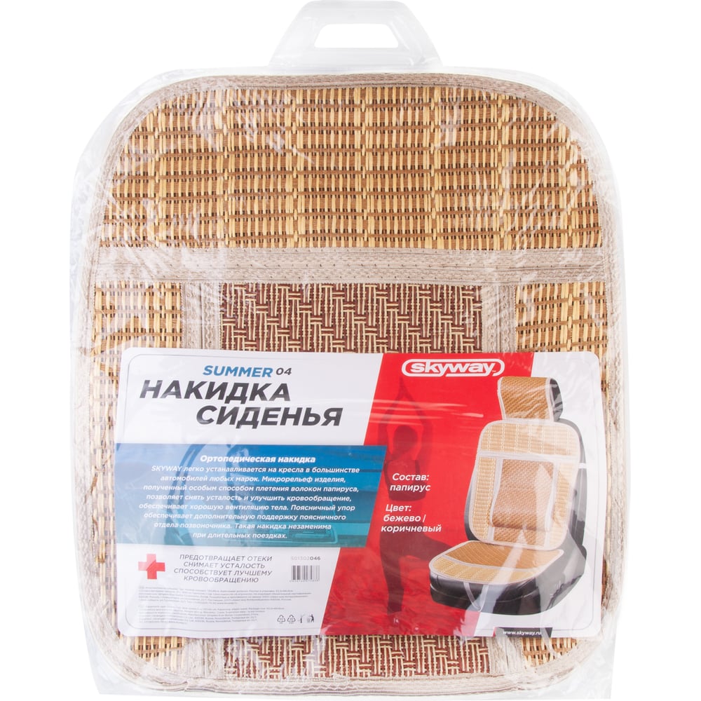 Накидка сиденья SKYWAY Summer-04 папирус, с поддержкой спины, бежево/коричневый, 1 шт. S01302046