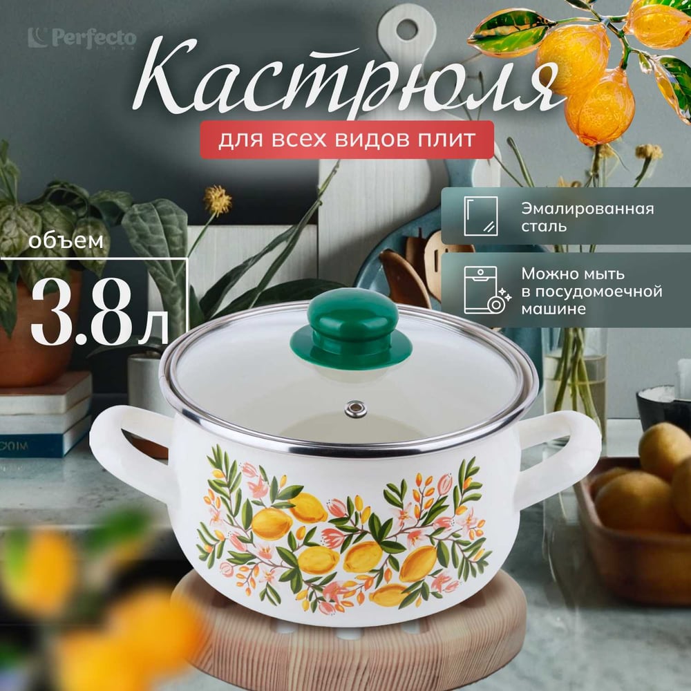 Стальная эмалированная кастрюля PERFECTO LINEA 3.8 л, серия лимон 50-138380