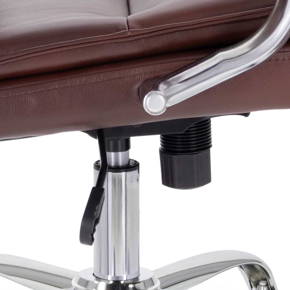 Габариты без упаковки 700х1200х780 мм Вес нетто 19.1 кг Стиль классический Регулировка высоты сиденья да Требует сборки да Подлокотники да Подъемный механизм да Механизм качания да Регулировка высоты спинки нет Регулировка высоты подлокотников нет Механизм вращения да Подголовник нет Регулировка наклона спинки нет Подставка для ног нет Max нагрузка 120 кг Ширина сиденья 550 мм Глубина сиденья 470 мм Ширина спинки 550 мм Высота спинки 660 мм Min высота сиденья 500 мм Мах высота сиденья 600 мм Цвет спинки коричневый Материал крестовины хромированная сталь Материал подлокотников металл/экокожа Цвет сиденья коричневый Материал обивки экокожа