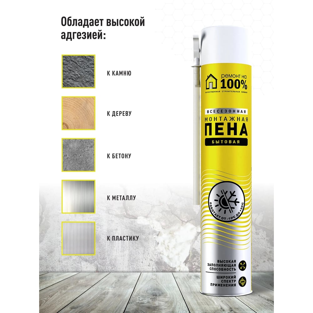 Монтажная всесезонная бытовая пена Ремонт на 100% R100BCJ0058