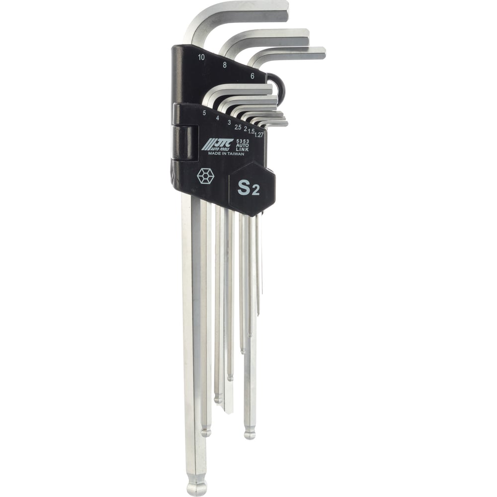 Набор Г-образных шестигранных экстрадлинных ключей с шаром 1.27-10мм 10шт JTC 5353
