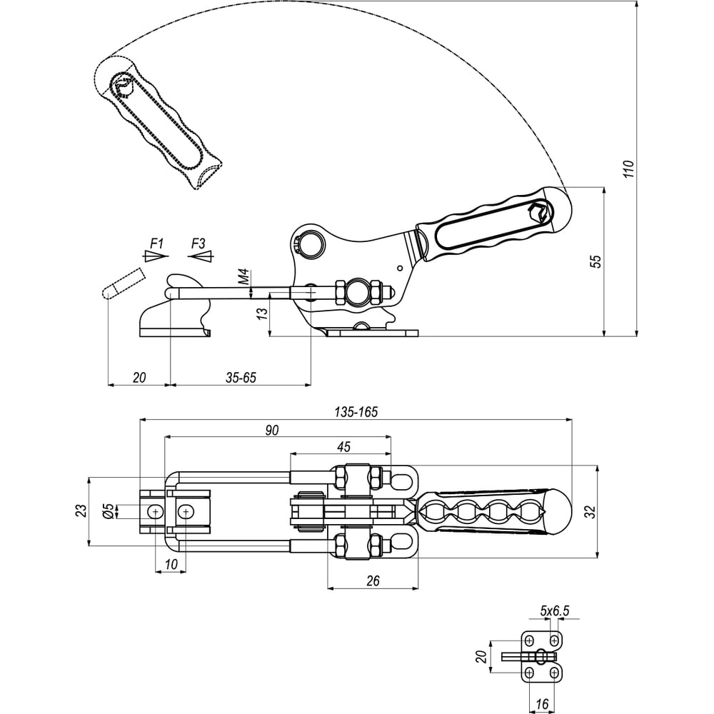 Натяжная защелка со скобой, рукояткой и крюком KUKAMET 311-1