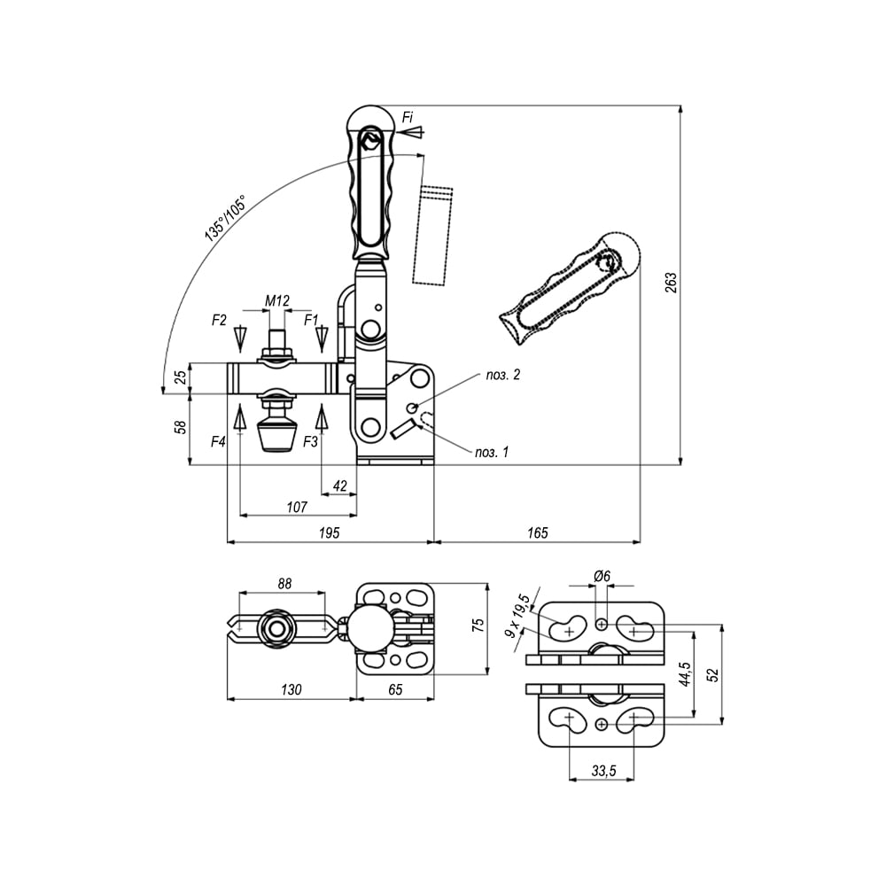 Прижим механический с горизонтальным основанием KUKAMET, усилие 500 кг 211-5