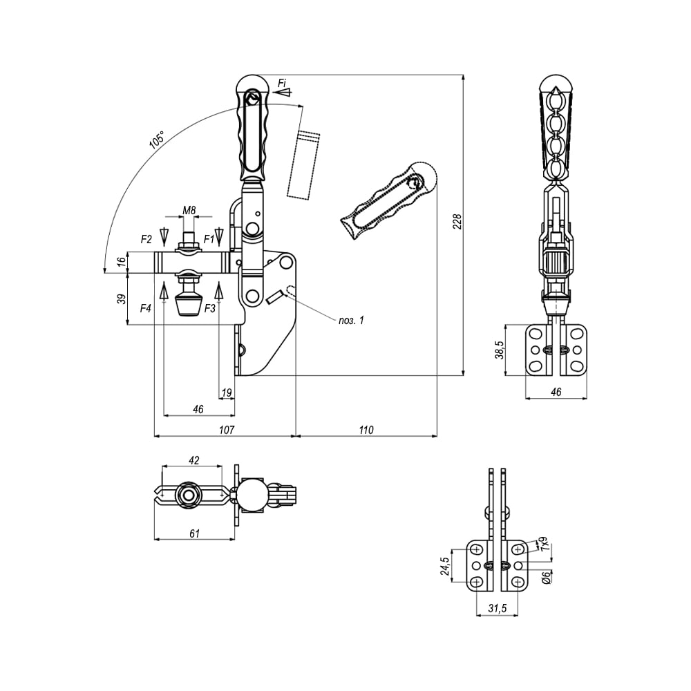 | Вид струбцины | вертикальные |