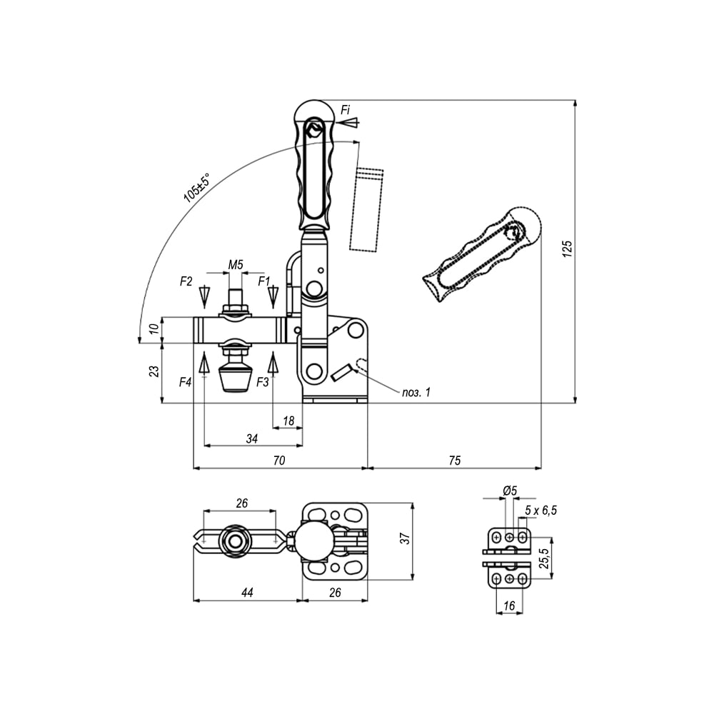 Прижим механический с горизонтальным основанием KUKAMET, усилие 100 кг 211-1