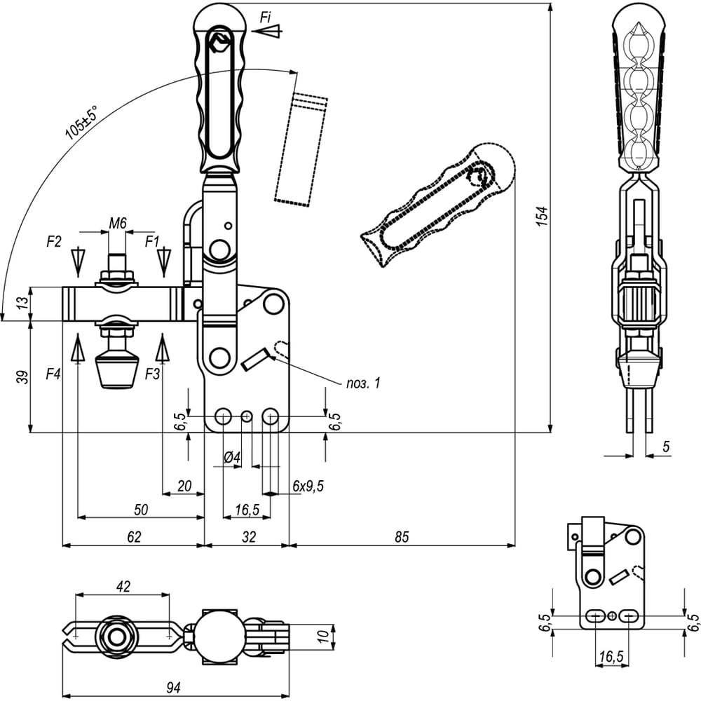 Прижим механический с вертикальным основанием KUKAMET, усилие 140 кг 212-2