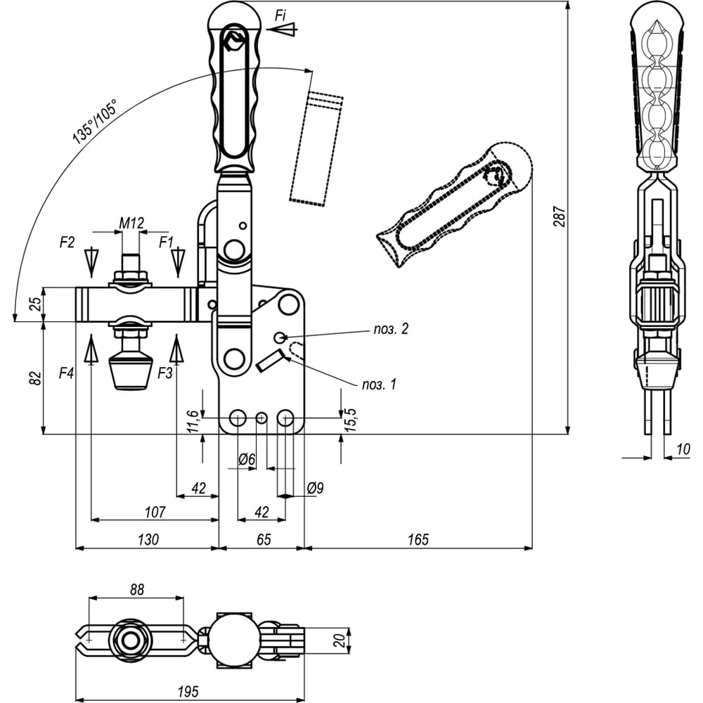 Прижим механический с вертикальным основанием KUKAMET, усилие 500 кг 212-5