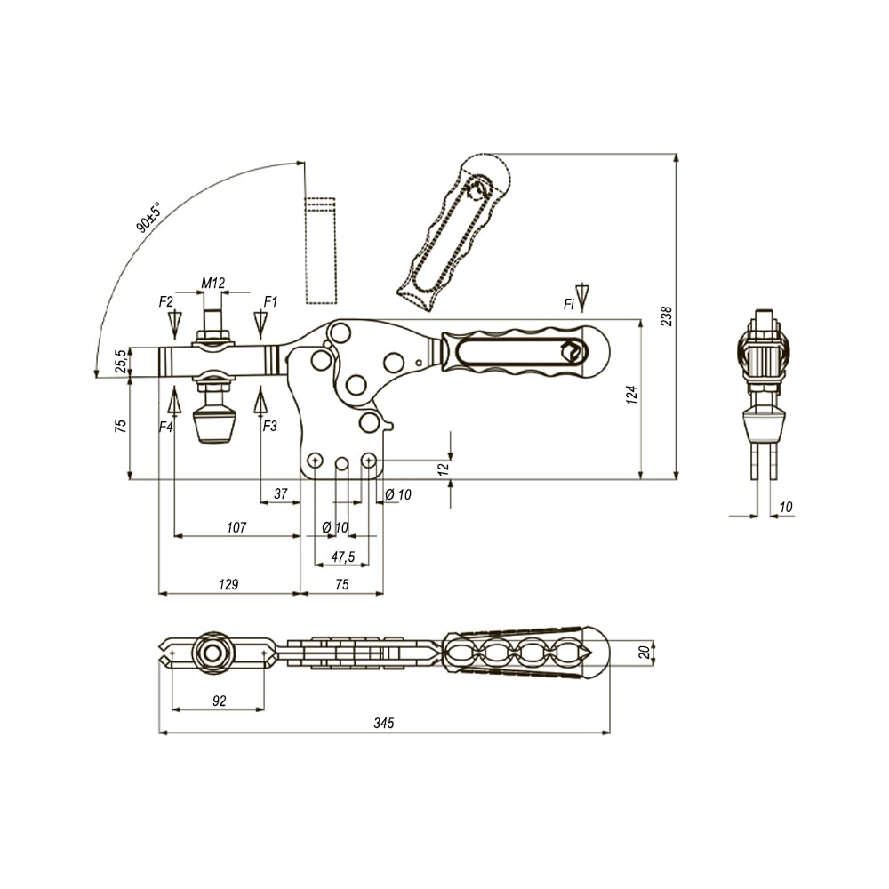 Прижим механический с вертикальным основанием KUKAMET, усилие 500 кг 112-5