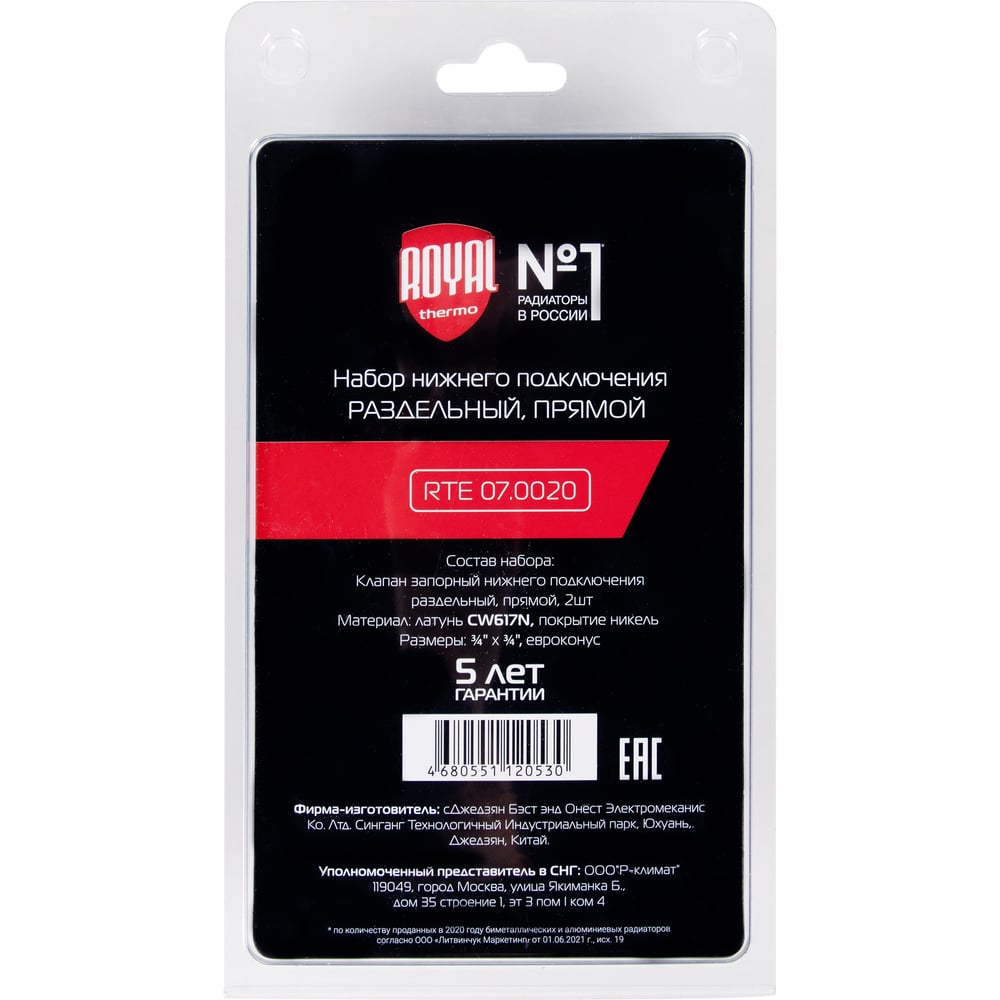 Набор нижнего подключения ROYAL THERMO прямой, раздельный, 3/4x3/4ЕК НС-1353995