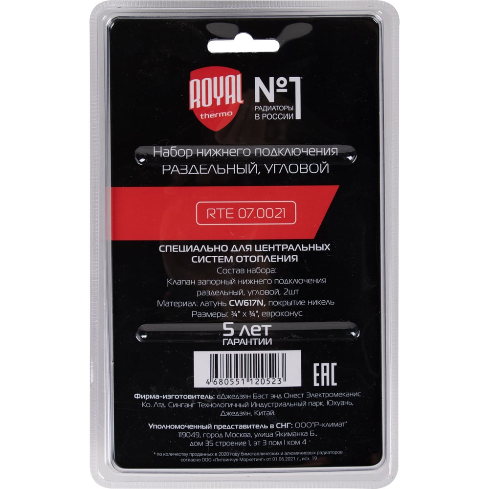 Набор нижнего подключения ROYAL THERMO угловой, раздельный, 3/4x3/4ЕК НС-1353996