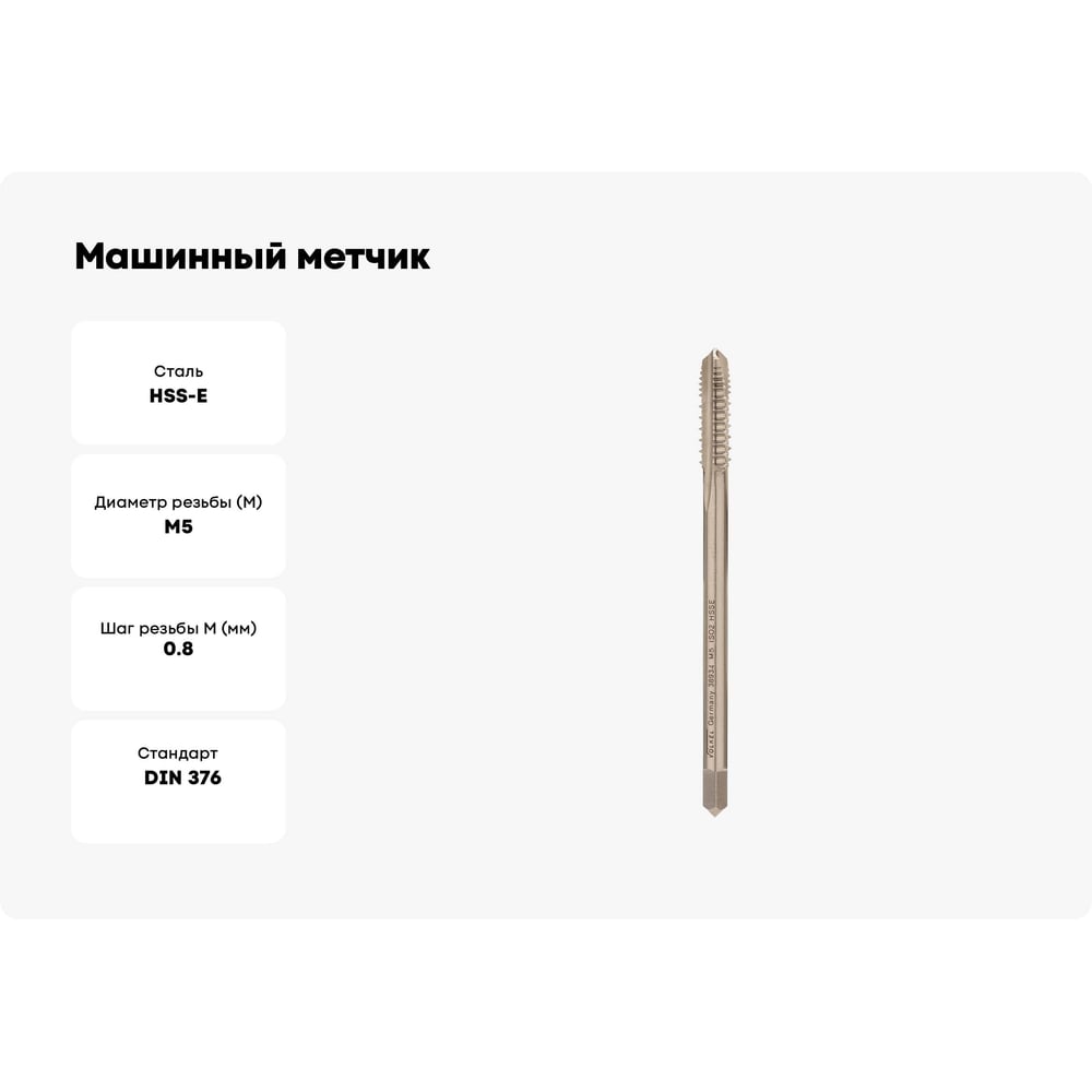 Машинный метчик VOELKEL шахматный М5 шаг 0,8 мм HSSE DIN376 V38934