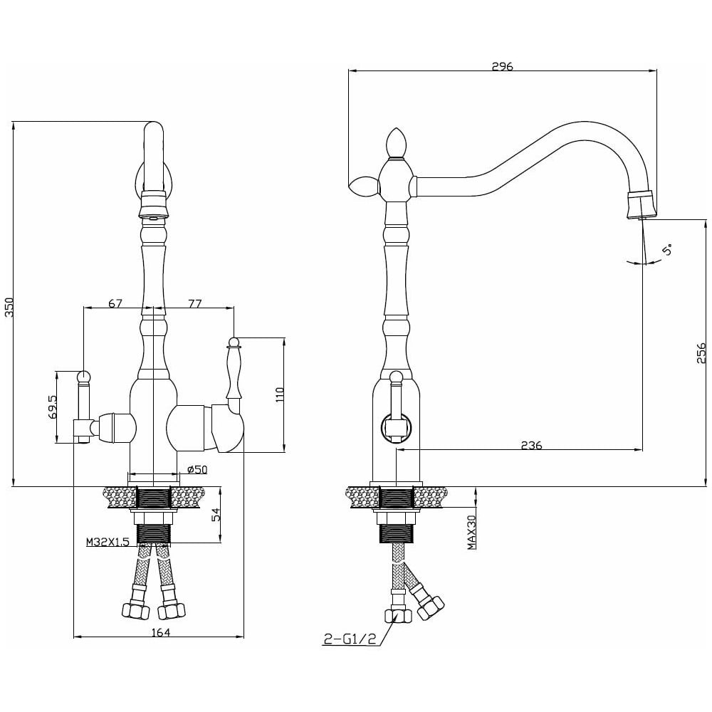 Смеситель для кухни ESKO Florence с L-изливом, бронза FR 519 Br