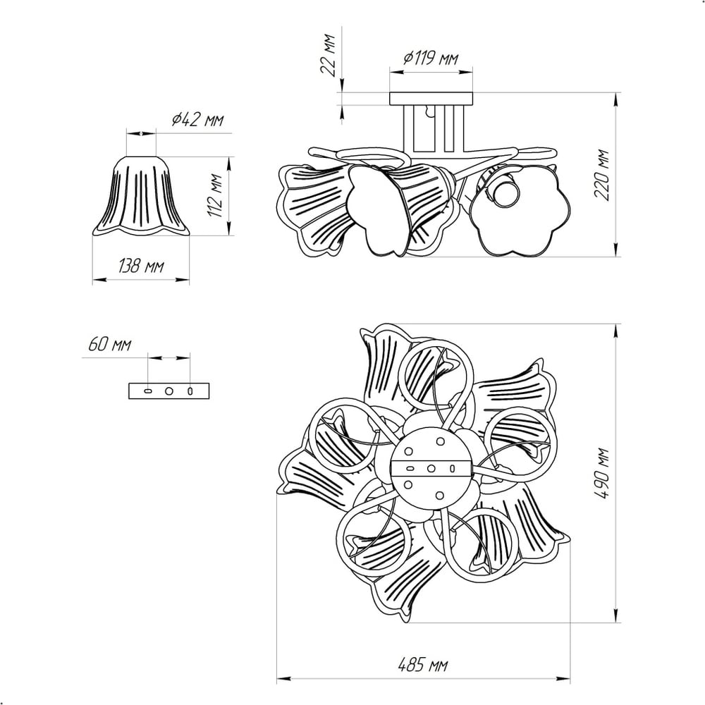 | Поверхность плафонов | матовая |