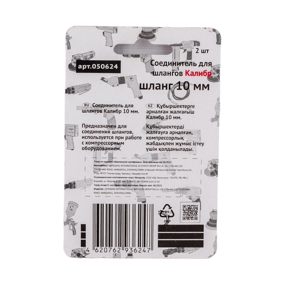 Соединитель для шлангов (2 шт; 10 мм) Калибр 00000050299