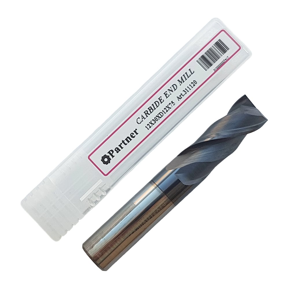 Фреза концевая твердосплавная универсальная до 45 НRC Серия 311 (12х30х75 мм; 2-х перая; AlTiN; хв-к 12 мм) Partner 311120