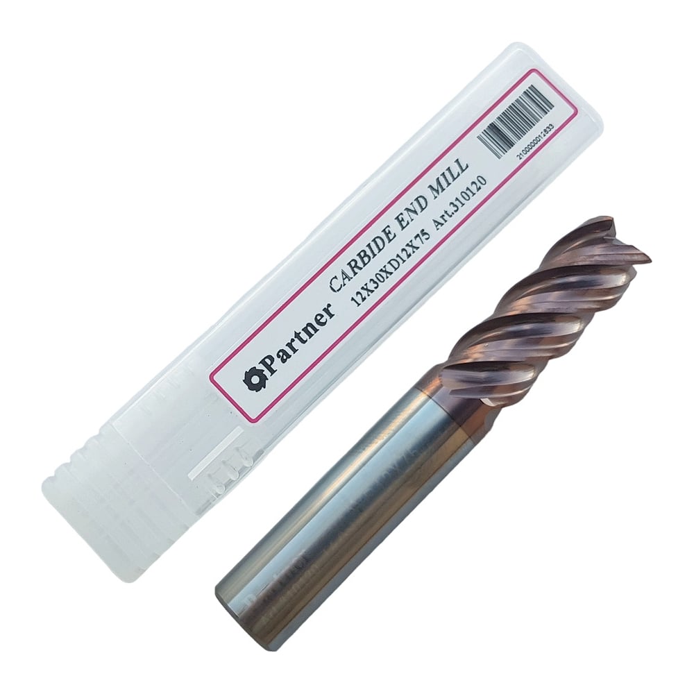 Фреза концевая твердосплавная до 65 НRC Серия 310 (12х30х75 мм; 4-х перая; TiAlSIN; 45 градусов; хв-к 12 мм) Partner 310120