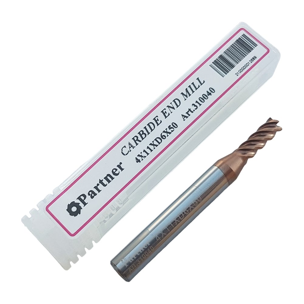 Фреза концевая твердосплавная до 65 НRC Серия 310 (4х11х50 мм; 4-х перая; TiAlSIN; 45 градусов; хв-к 6 мм) Partner 310040