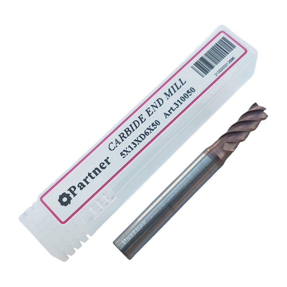 Фреза концевая твердосплавная до 65 НRC Серия 310 (5х13х50 мм; 4-х перая; TiAlSIN; 45 градусов; хв-к 6 мм) Partner 310050