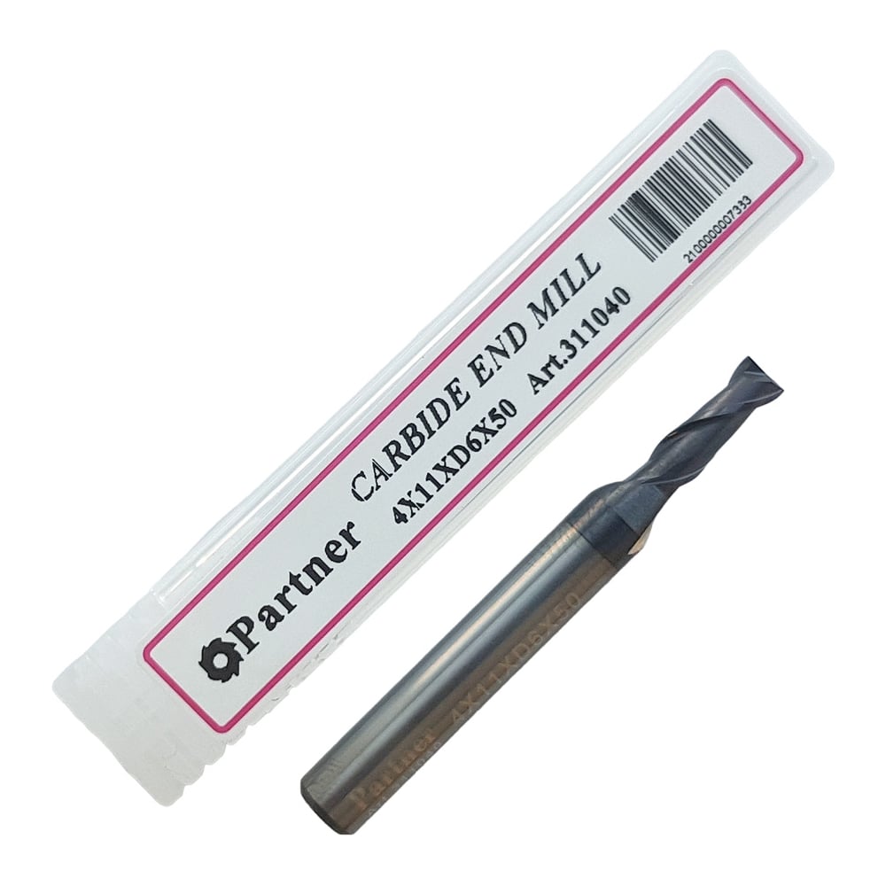 Фреза концевая твердосплавная универсальная до 45 НRC Серия 311 (4х11х50 мм; 2-х перая; AlTiN; хв-к 6 мм) Partner 311040