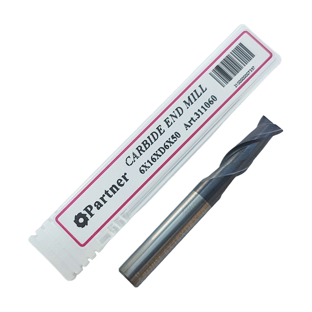 Фреза концевая твердосплавная универсальная до 45 НRC Серия 311 (6х16х50 мм; 2-х перая; AlTiN; хв-к 6 мм) Partner 311060
