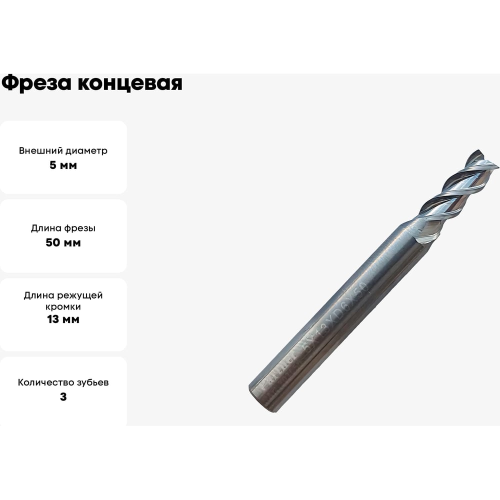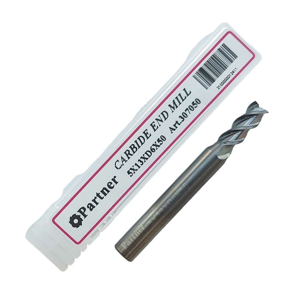 Фреза концевая твердосплавная по цветному металлу (5х13х50 мм; 3-х перая; хв-к 6 мм) Partner 307050