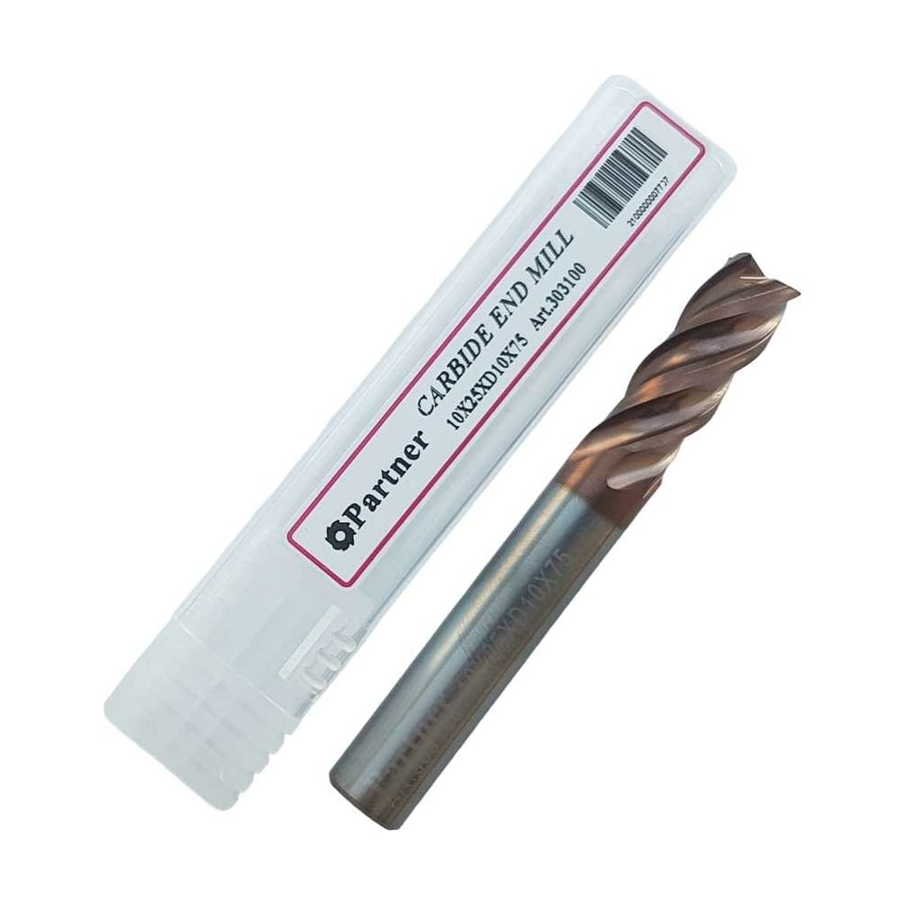 Фреза концевая твердосплавная по нержавеющей стали Серия 303 (10х25х75 мм; 4-х перая; TiAlSIN; 38/41 градусов) Partner 303100