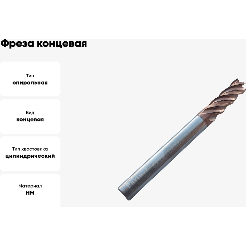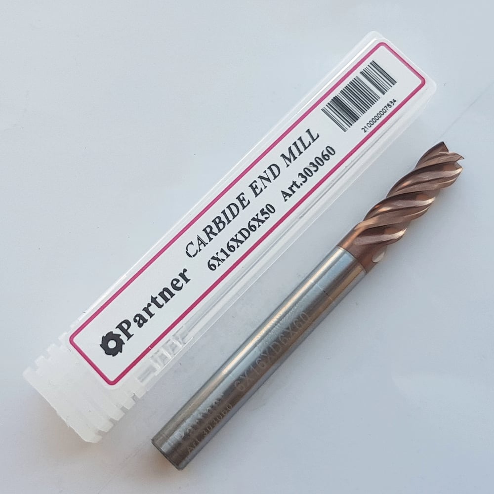 Фреза концевая твердосплавная по нержавеющей стали Серия 303 (6х16х50 мм; 4-х перая; TiAlSIN; 38/41 градусов) Partner 303060