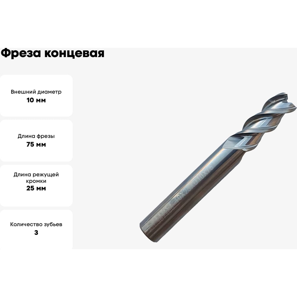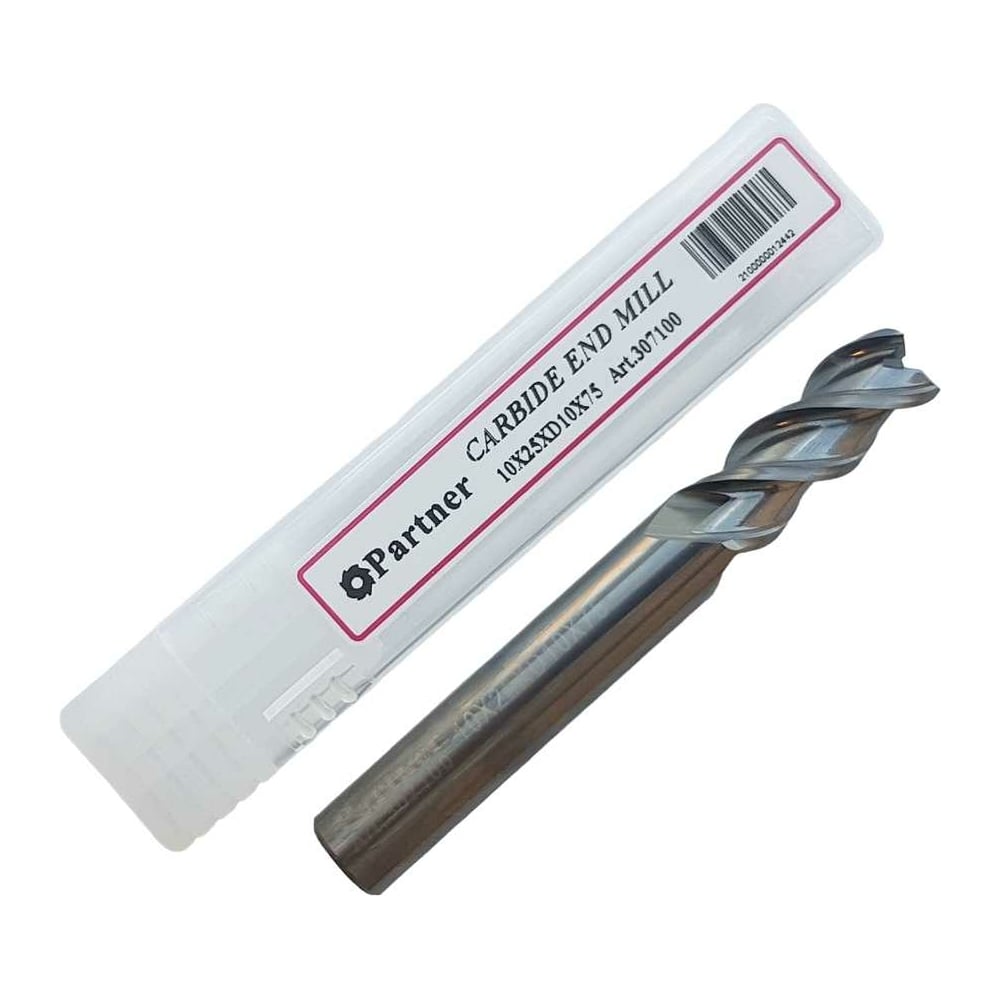 Фреза концевая твердосплавная по цветному металлу (10х25х75 мм; 3-х перая; хв-к 10 мм) Partner 307100