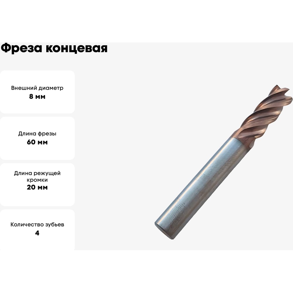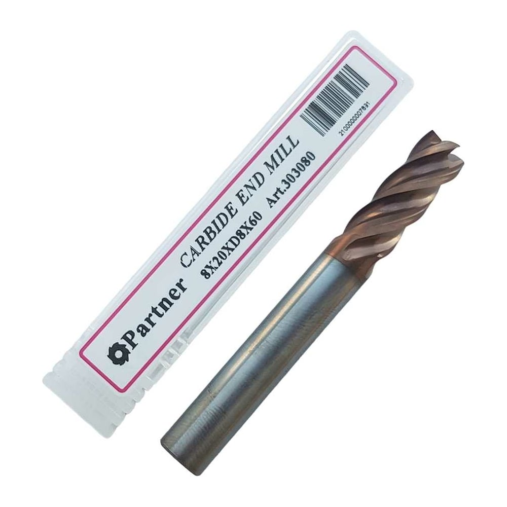 Фреза концевая твердосплавная по нержавеющей стали Серия 303 (8х20х60 мм; 4-х перая; TiAlSIN; 38/41 градусов) Partner 303080
