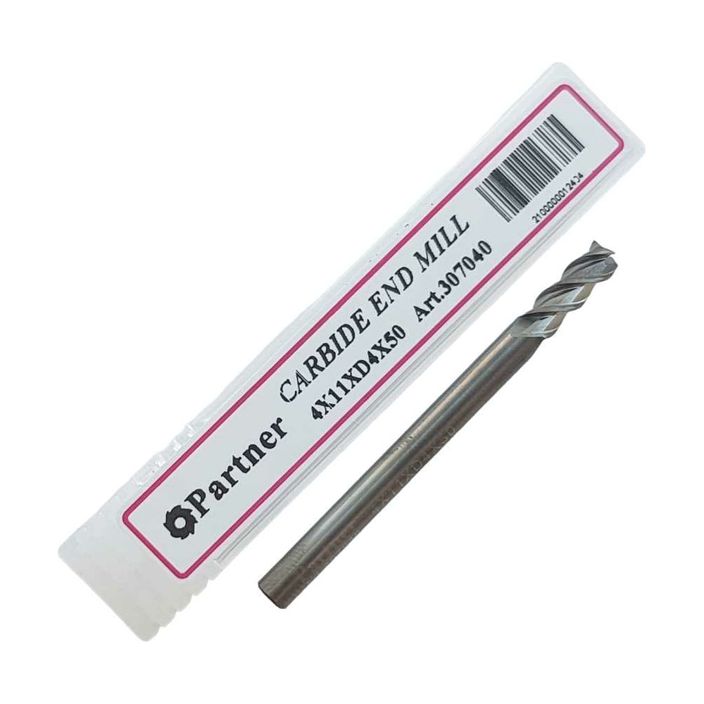 Фреза концевая твердосплавная по цветному металлу (4х11х50 мм; 3-х перая; хв-к 4 мм) Partner 307040
