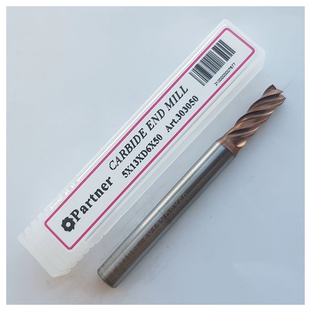 Фреза концевая твердосплавная по нержавеющей стали Серия 303 (5х13х50 мм; 4-х перая; TiAlSIN; 38/41 градусов) Partner 303050