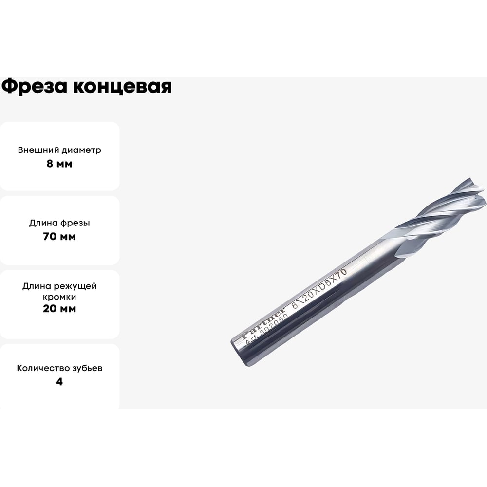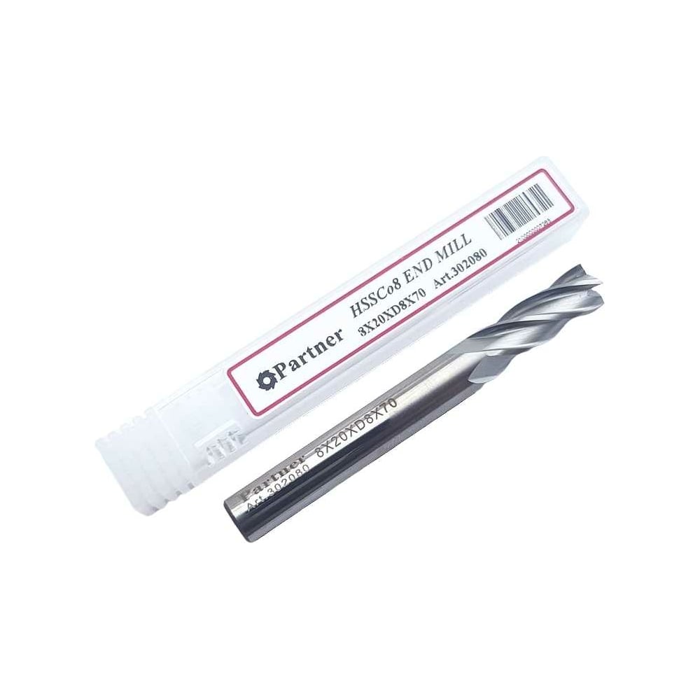 Фреза концевая Серия 302 (8х20х70 мм; HSSЕ; 4-х перая; хв-к 8 мм) Partner 302080
