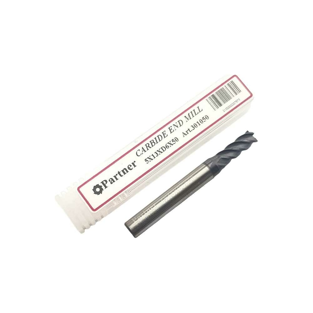 Фреза концевая твердосплавная по нержавеющей стали Серия 301 (5х13х50 мм; 4-х перая; AlTiN; 35гр; хв-к 6 мм) Partner 301050